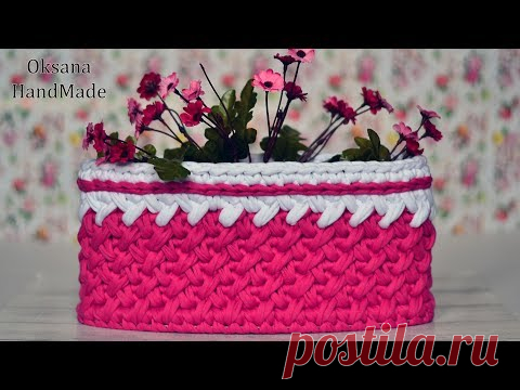Корзина из трикотажной пряжи. Узор "Плетенка". Basket crochet