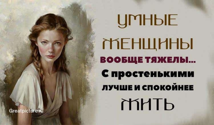 Умные женщины вообще тяжелы...С простенькими лучше и спокойнее... Умные женщины вообще тяжелы... С простенькими лучше и спокойнее живётся. Пасмурный, дождливый день. Небо надолго заволокло тучами, и дождю конца не предвидится. На дворе слякоть, лужи, мокрые галки, а в комнатах сумерки и такой холод, что хоть печи топи.