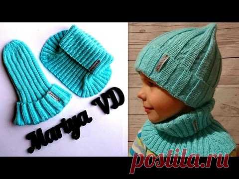 ♥ Стильная ДЕТСКАЯ ШАПКА спицами ♥ Вязаная шапка. Подробный МК. Mariya VD.
