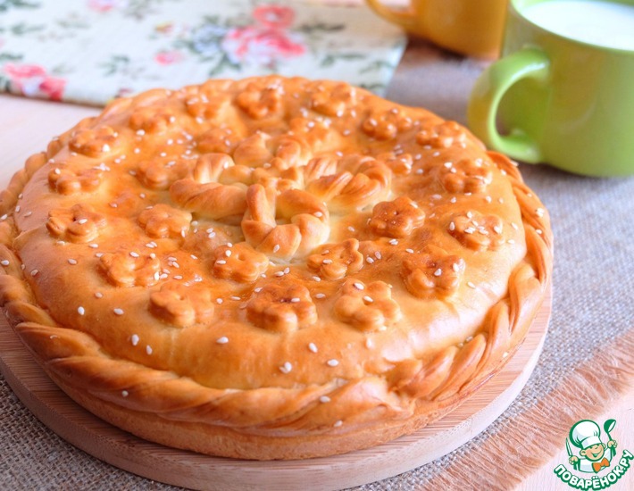 - Пирог смазать взбитым яйцом, посыпать кунжутом. Отправить пирог в разогретый до 180С духовой шкаф. Выпекать до готовности. Хочу обратить внимание, что духовки у всех разные, каждый должен ориентироваться на свою. Возможно в отдельных духовках температурный режим следует уменьшить или наоборот увеличить.