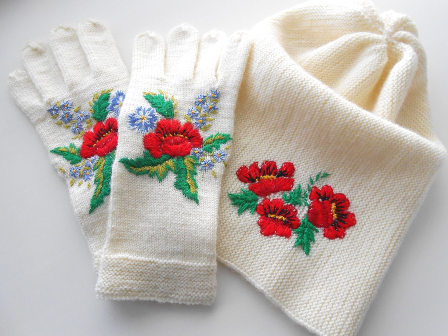 Вышивка на вязаных вещах: готовимся к осеннему ненастью