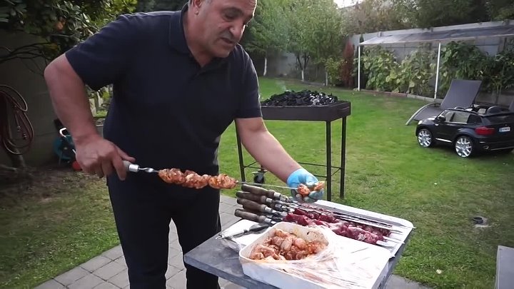 Шашлык из говяжьего филе с овощным салатом. Рецепт от Жоржа