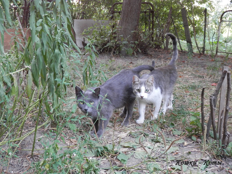 Мы с котярой ходим парой. Дело было летом (вторая часть) - фотогалерея - А теперь медленно, осторожно подходим ближе. Братья – разбойники. Вон еще наши идут. Здорово, котаны! Выходи я вижу, где ты спрятался. Понагородили тут. Разрешите поинтересоваться, а вы к кому? Так вам не по этой дороге, вам вон туда...