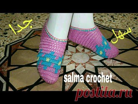 كروشيه حذاء بالورينا كلكول جوارب نسائي موديل #10 Crochet Slipper Women's