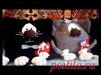 Подушкa кот+как связать кота спицами(хвост).Часть 1.Котоподушка.