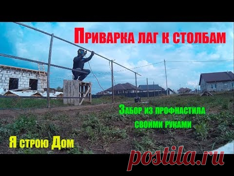 Приварка поперечин к столбам забора . Забор из профнастила своими руками часть 8
