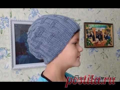 Шапка спицами-брендовая шапка для подростка.Видео урок шапки для детей