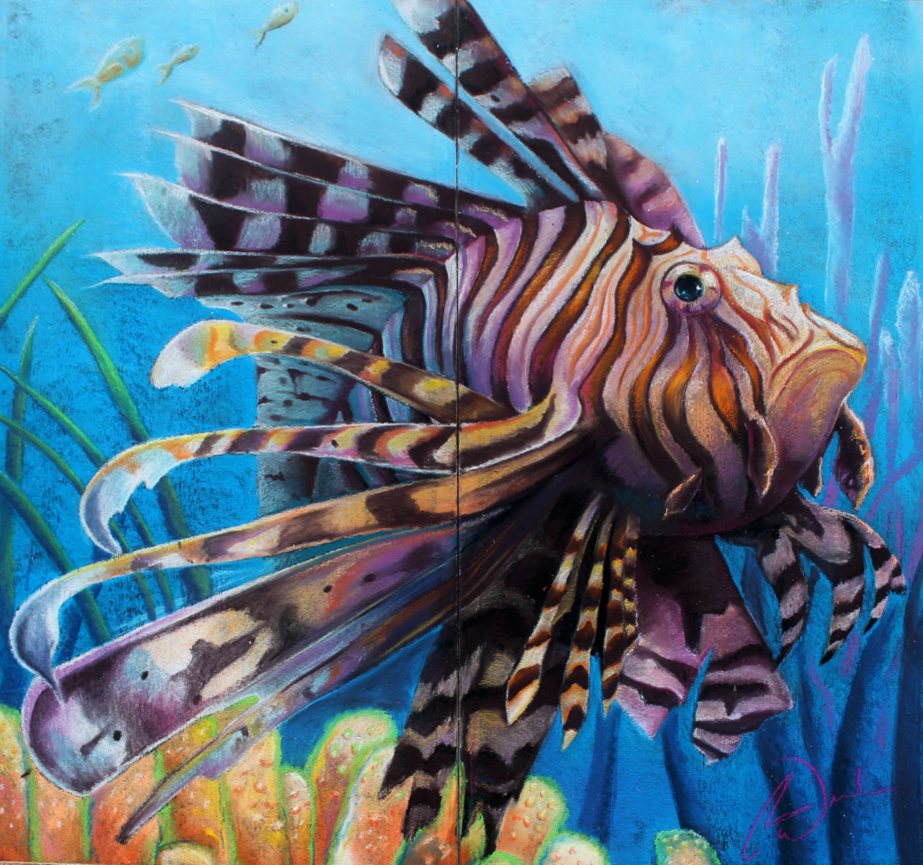 LionFish ChalkArt This was done for the Gasparialla Arts Festival in Downtown Tampa FL. gasparillaarts.com/chalk-walk Final size: 8ft x 8ft Time: about 14 hoursDone on on concrete backer board ...