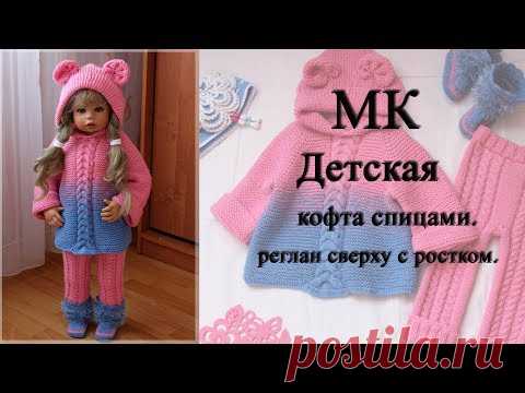 Детская кофта спицами/реглан сверху/росток/расчет/без швов/с капюшоном мастер класс