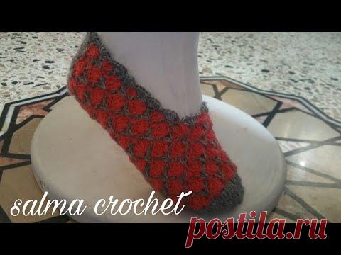 Crocheted slipper. shoes are so beautiful كروشيه حذاء بالوري سليبر بغرزة مميزة ولا اجمل