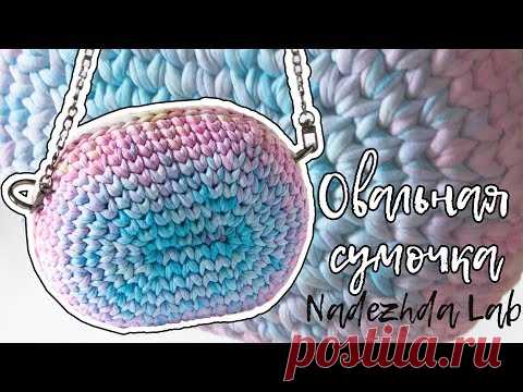 Овальная сумочка пухляшка. Вязание из трикотажной пряжи. DIY