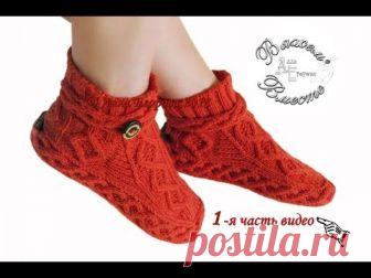 Тапочки следки с ромбами связаны спицами. 1-ЧАСТЬ
