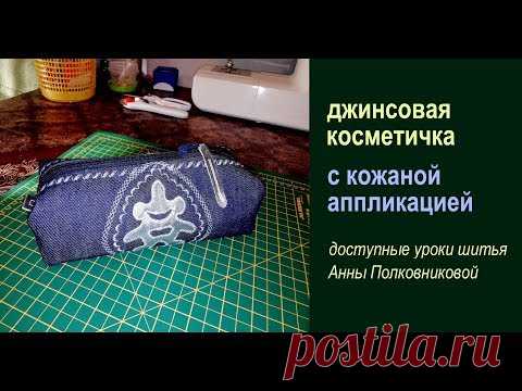 сумки своими руками - джинсовая косметичка с кожаной аппликацией