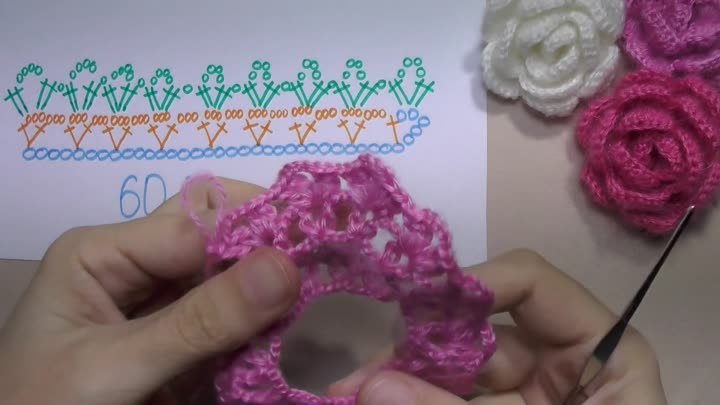 Как связать РОЗОЧКУ крючком.Вязание по схеме.Урок вязания для начинающих.