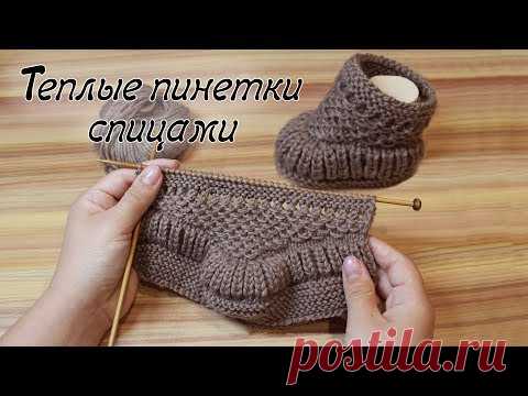 Теплые пинетки спицами | Warm baby booties knitting pattern