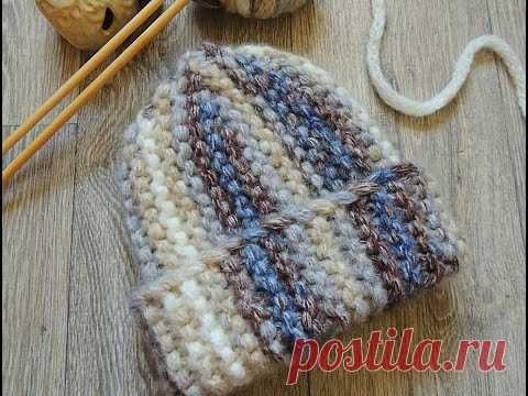 Шапка-бини, шапка - "монголка" спицами. МК.