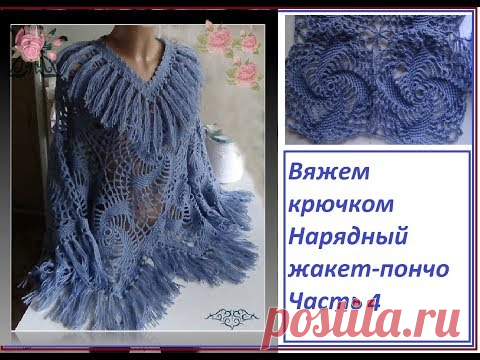 Вяжем крючком - нарядный жакет-пончо.Часть 4 - отделка