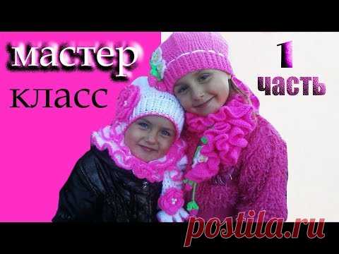 Вязаный детский комплект крючком берет и шарф / Как связать берет/ 1 часть.