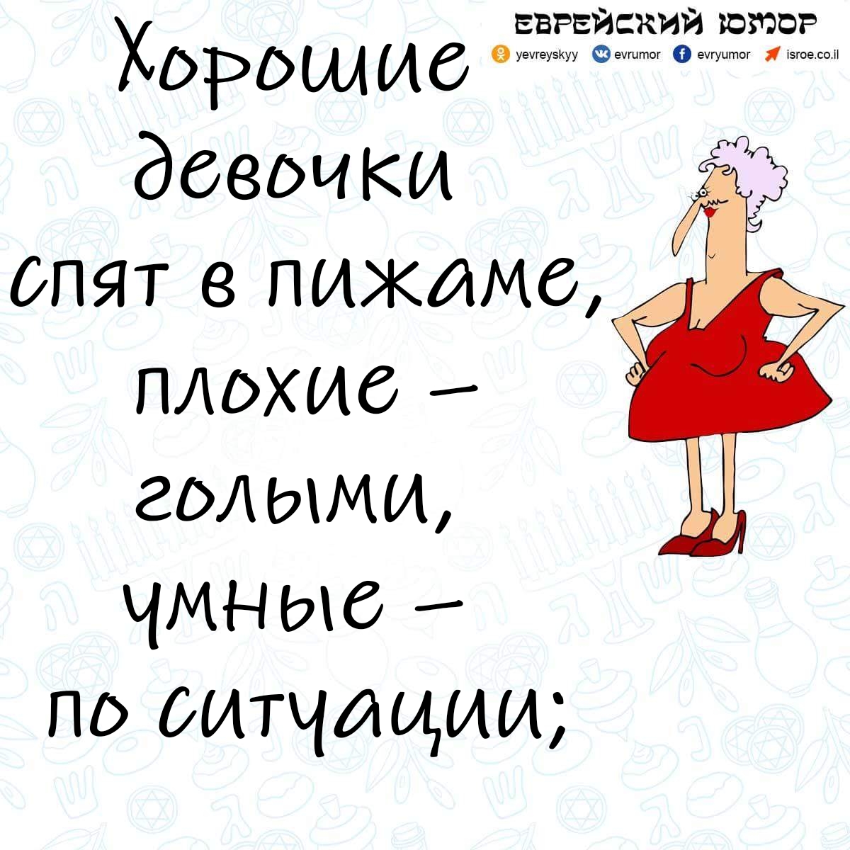 Хорошие, плохие, и умные девочки. Кому какую, секреты психологии от еврейского юмора Хорошие девочки ждут принца на белом коне, плохие – миллионера на черном Мерседесе, умные считают обоих персонажей вымышленными; Хорошие девочки ищут свои эрогенные зоны, плохие знают их, умные считают, что не эрогенных зон не существует; Хорошие девочки верны мужу, плохие – любовнику, умные –...