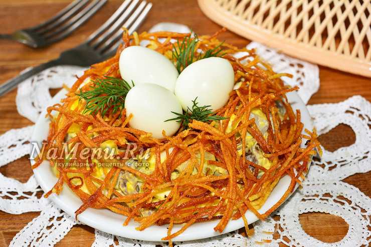 Салат "Гнездо кукушки": пошаговый рецепт с фото