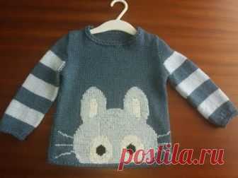 Свитер на мальчика спицами с зайцем (возраст 2 - 2,5 года) ЧАСТЬ 1