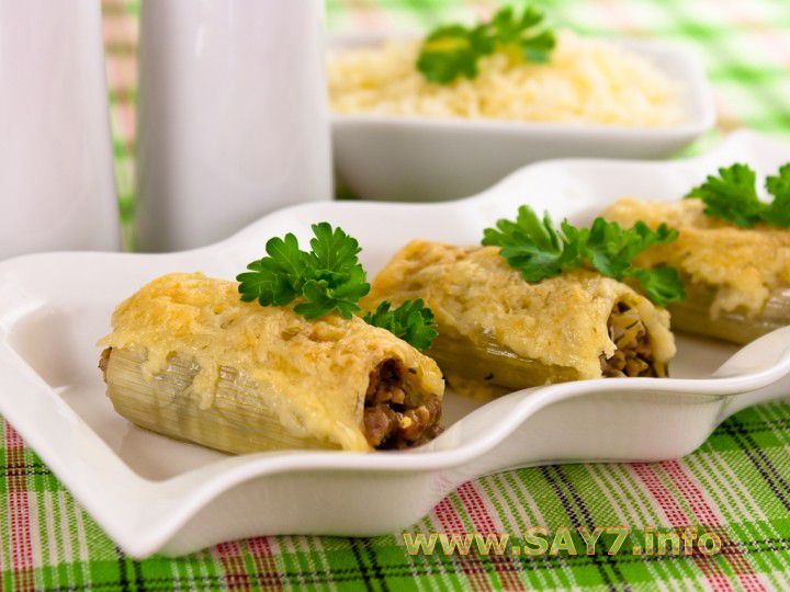 - Лук-порей нарезать кусочками длиной около 5 см.