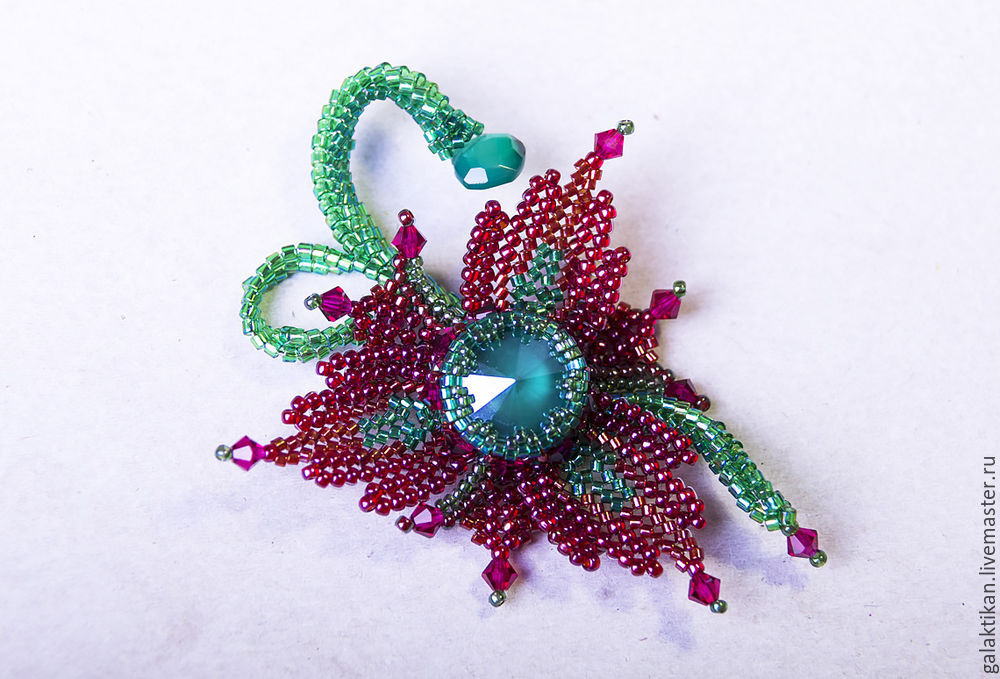 Процесс изготовления цветка-брошки «Фантазия» с кристаллом Swarovski – Ярмарка Мастеров
