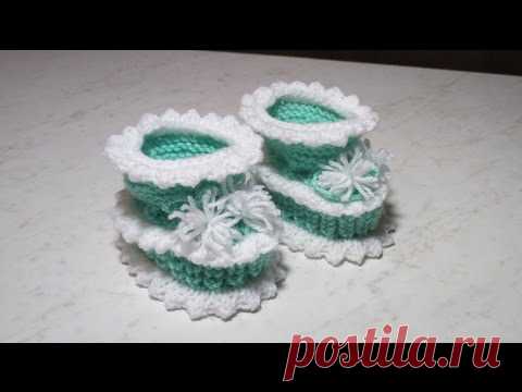 Пинетки с зубчиками спицами. Booties with teeth spokes.
