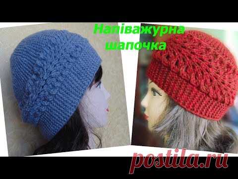Осіння шапка вязана двома спицями,ажурним узором.Beautiful knitting hat
