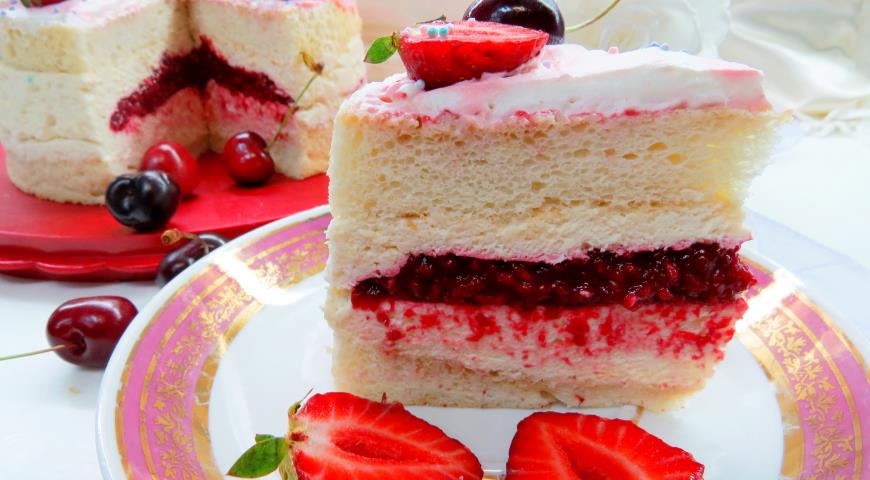 Торт 'Пища ангела' с малиновым конфи