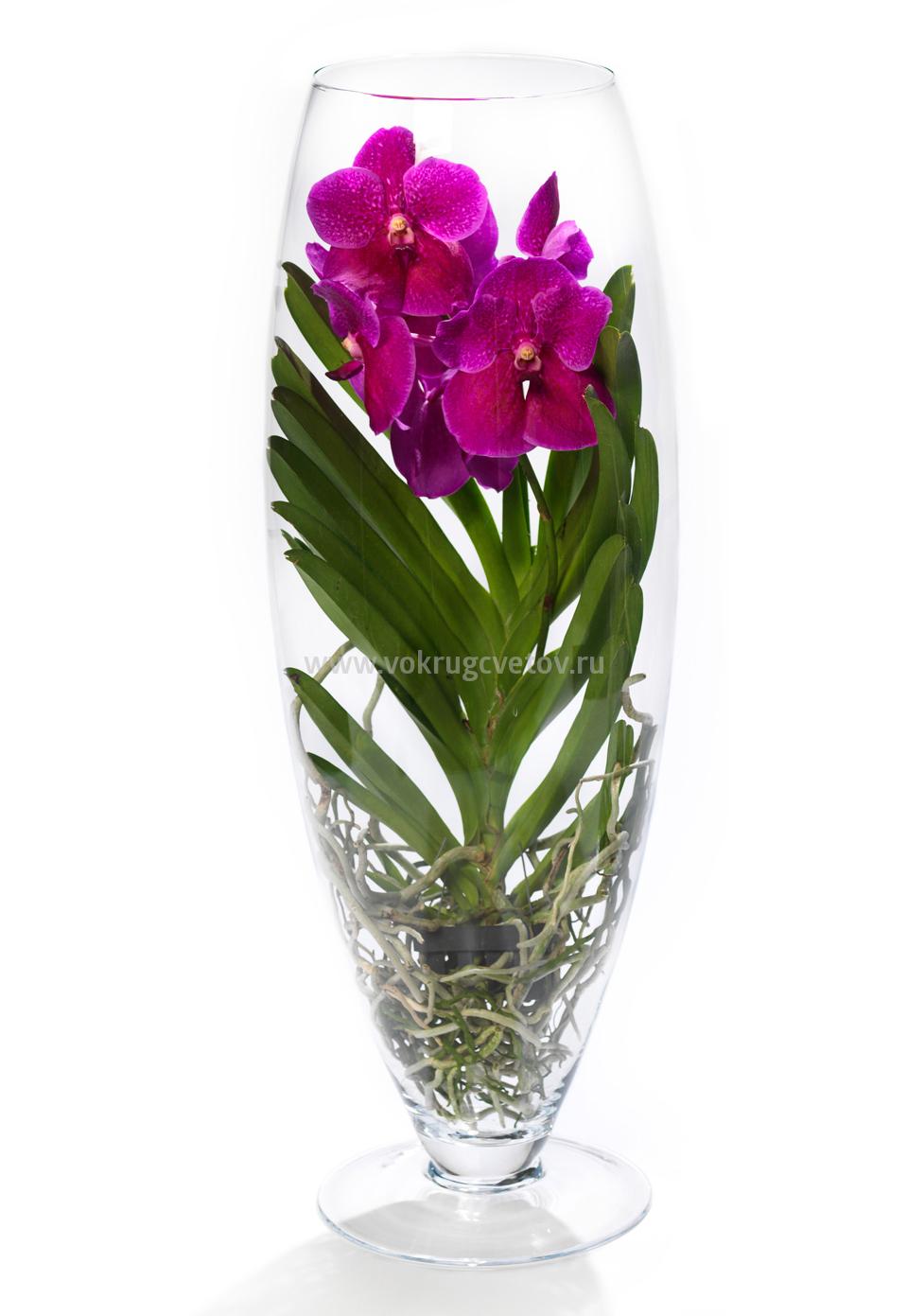 Орхидея Ванда розовая в стеклянной вазе купить в интернет магазине «Вокруг цветов»