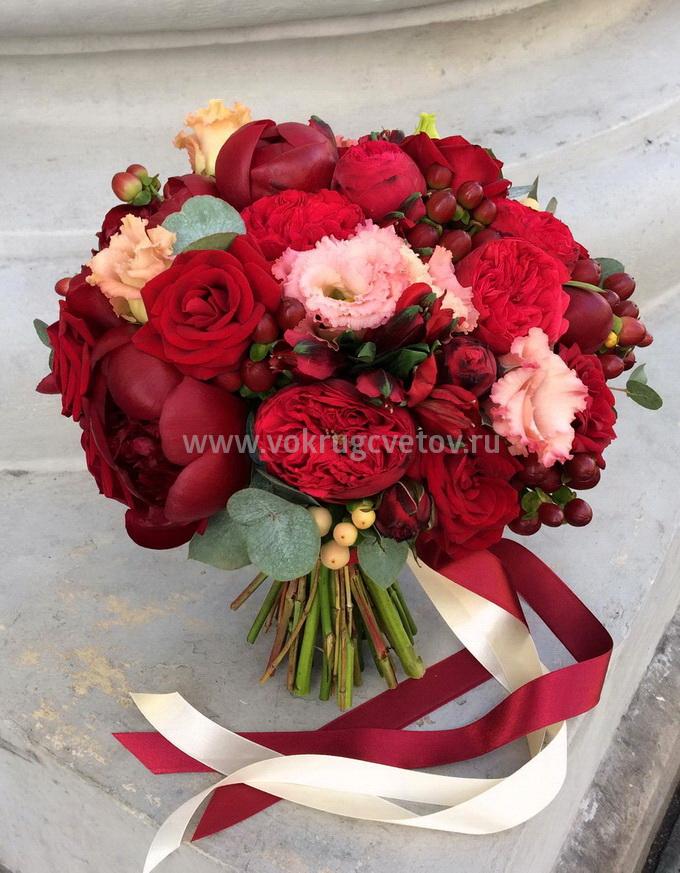 Купить букет невесты винный пионы и розы с доставкой. Вокруг цветов - интернет магазин.