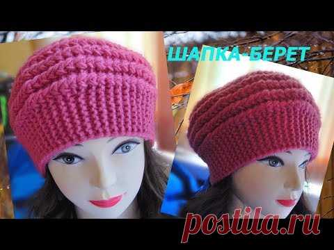 Шапка-берет з красивим узором.Поперечне вязання на двох спицях.Cap with knitting needles