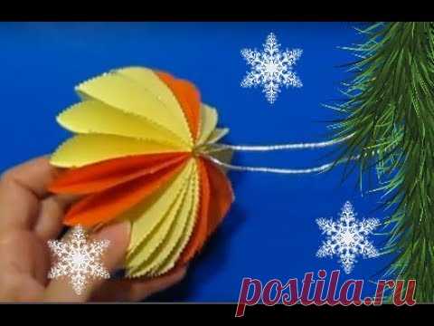 Как сделать игрушку на елку своими руками/ПолуШарик из бумаги/Новогодние подарки поделки для детей