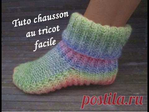 TUTO CHAUSSONS COTE ANGLAISE AU TRICOT Slippers booties knitting BOTITAS BOTAS TEJIDAS DOS AGUJAS