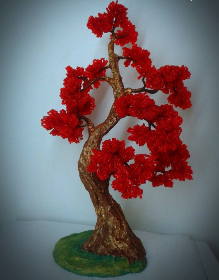 Бонсай "Гранат " . Высота 28см . Цена 1300 рублей . Крона - бисер . Ствол - гипс . Подставка - гипс .
