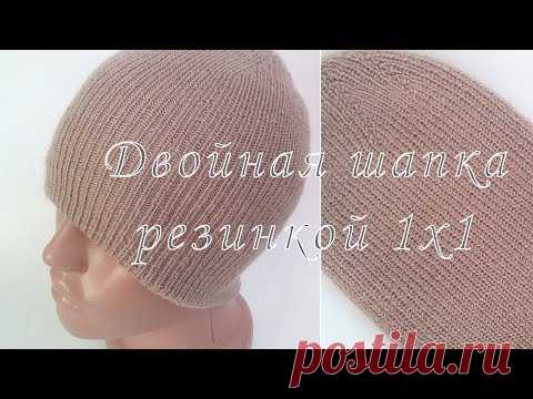 Двойная шапка резинкой 1х1. Вязание спицами. Knit Solo