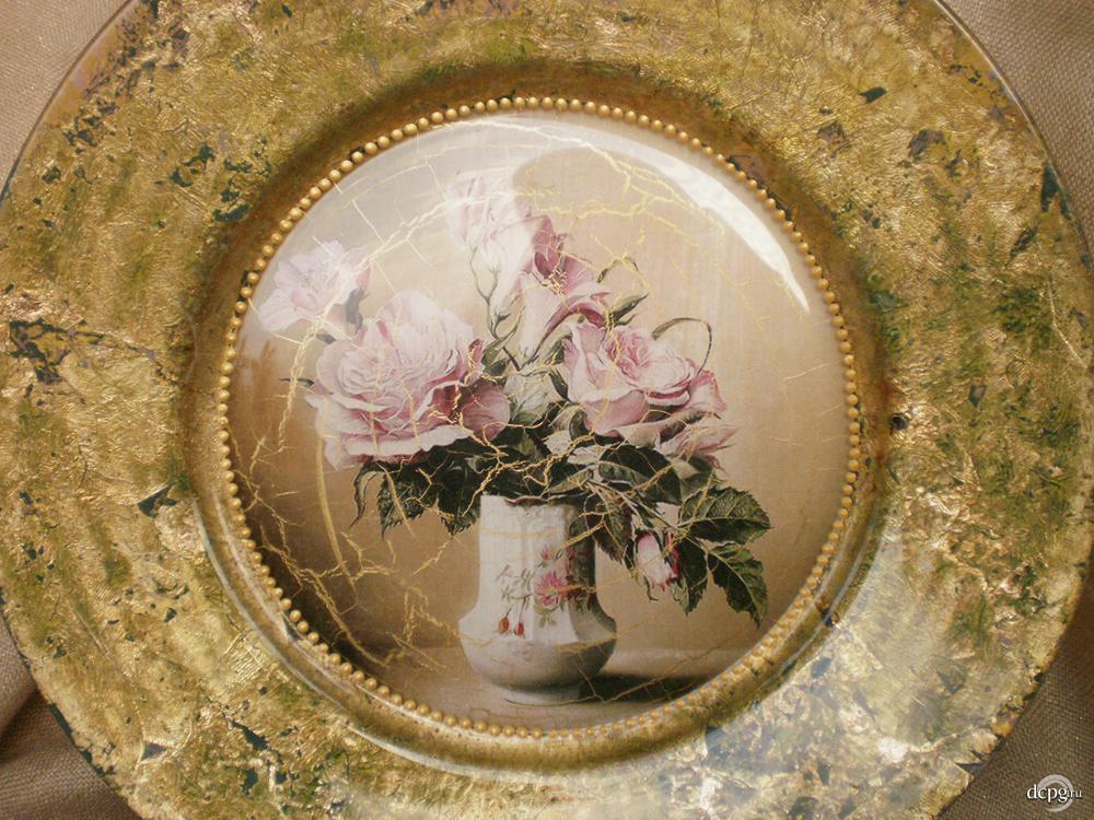 Декупаж - Сайт любителей декупажа - DCPG.RU | Работы с поталью №23. Тарелка интерьерная 'В лучах солнца'