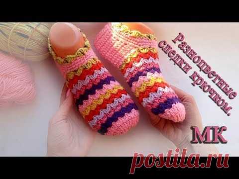 разноцветные следки крючком из остатков пряжи (мастер класс)