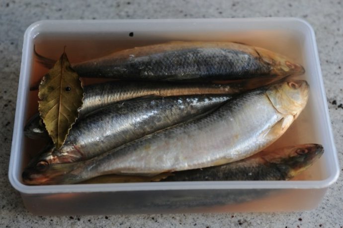 Этот рецепт подойдет не только для засолки селедки, но и скумбрии и любой красной рыбы.Ингредиенты: Сельдь – 1 кг; Соль – 6 стол. ложек без горки; Перец душистый горошком - 10 шт; Сахарный песок – 3 ст. ложки; Лавровый лист – 3-4 шт Вода – 1 литр.