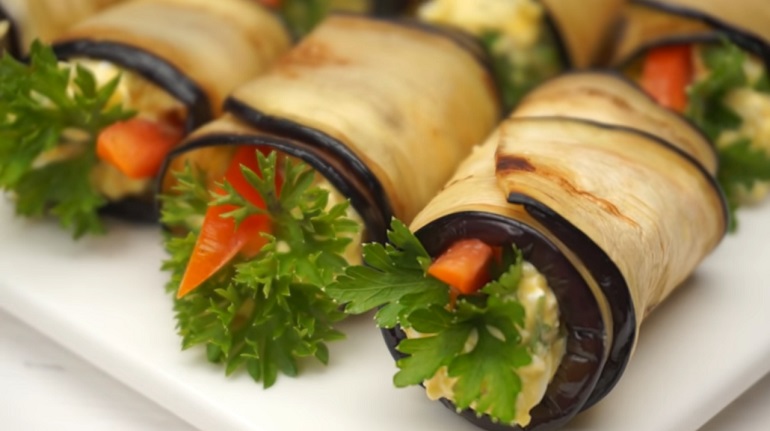 Рулеты из баклажанов с сыром: со стола разлетаются первыми В середине лета начинают спеть на грядках баклажаны: пожалуй, одни из самых любимых и популярных овощей. «Синенькие», как их называют в народе, используют для приготовления супов, салатов, закусок, де…