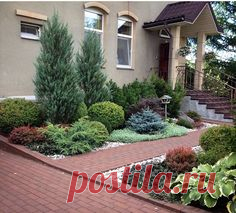 Blue green purple and juniper. Beautiful arrangement of evergreens for the front yard. #Aménagement