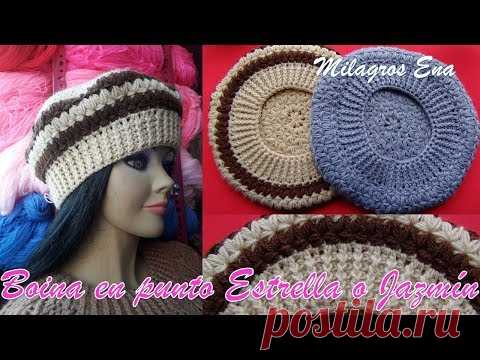 Boina a crochet en punto Estrella o Jazmín y punto Elástico Simple paso a paso - YouTube
