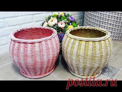 Плетеная корзинка - горшок / Плетение из газетных трубочек
