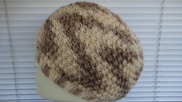 Шапка - берет узором Звездочки крючком. Crochet hat