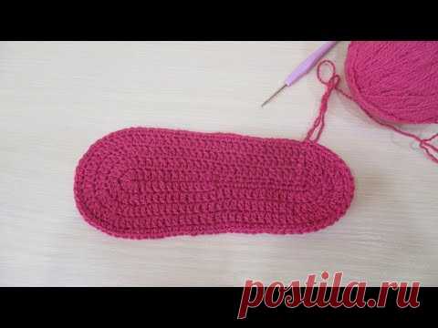 Как вязать подошву для тапочек. How to knit a sole for slippers.