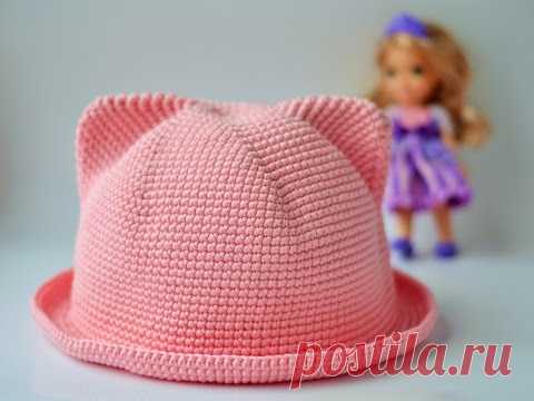 Шляпка с ушками крючком/ Crochet Cat Hat.
