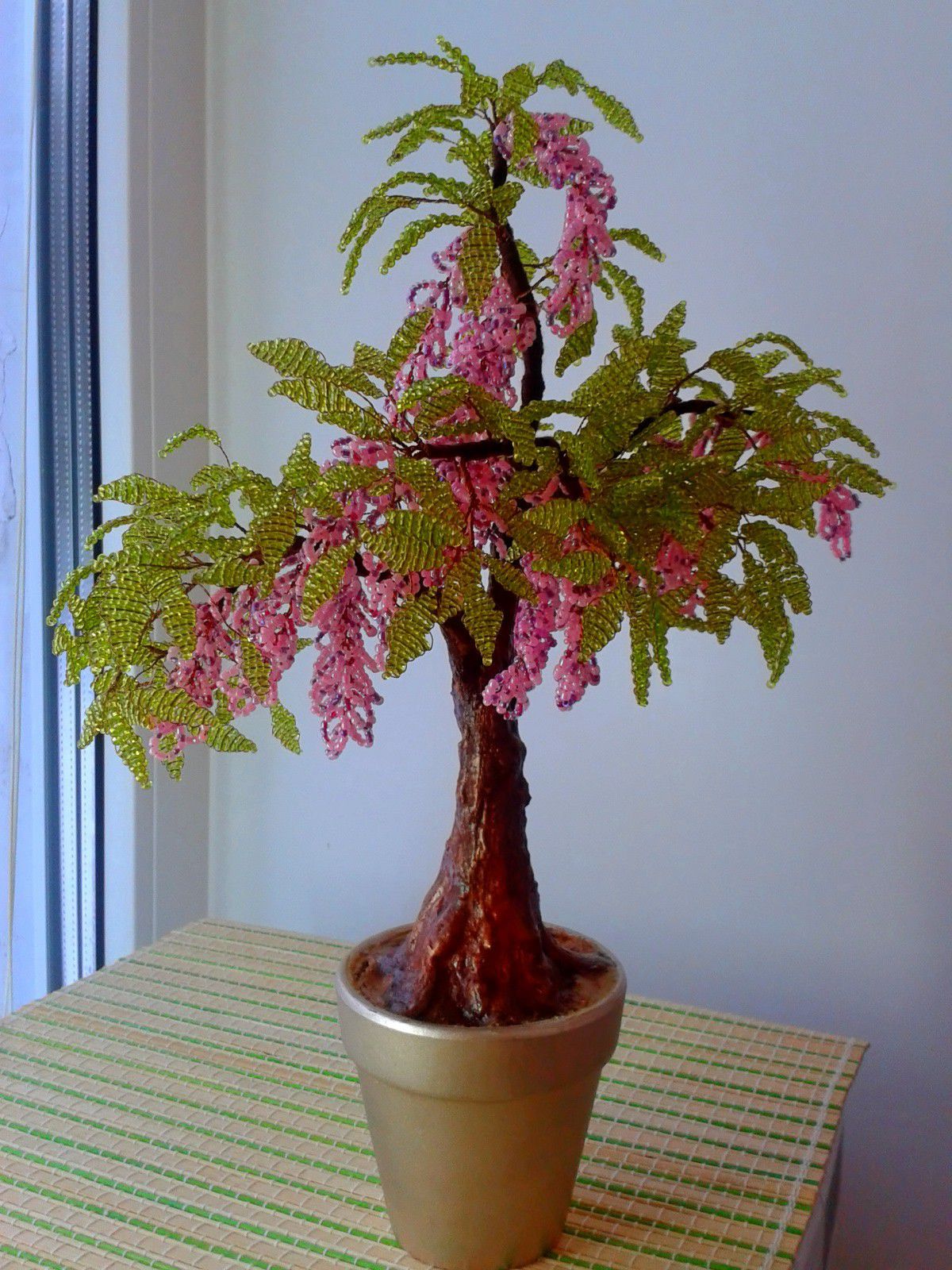 Дерево "В Горшочке" высота 28 см цена 1300 рублей крона- бисерствол -гипсгоршочек - керамика