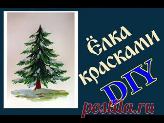 Как нарисовать елку красками. How to draw a Cristmas tree paints