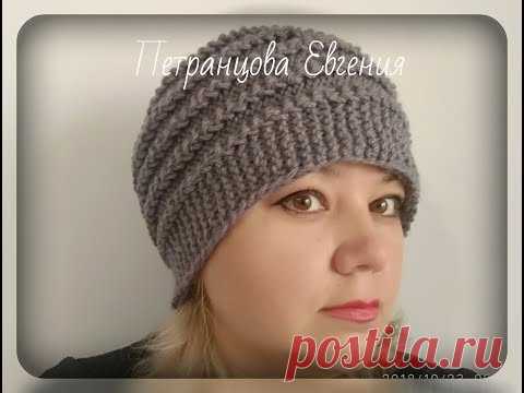 Женская шапка американской резинкой, вязание спицами